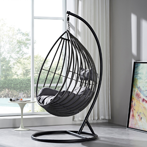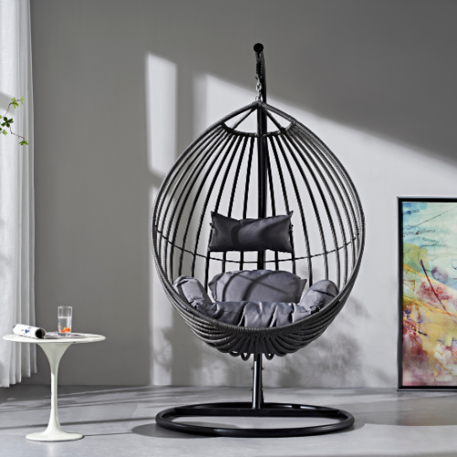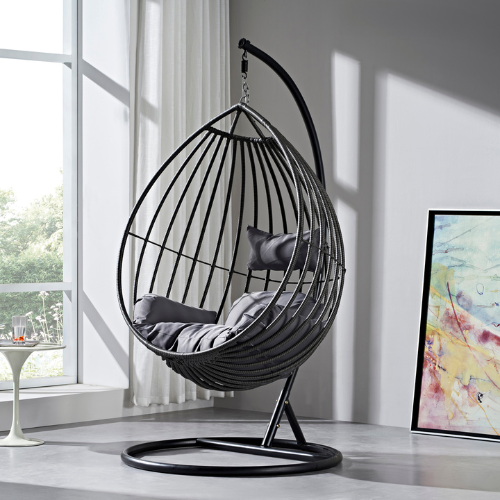 Rijoka Hangstoel Eggy Twisted Schommelstoel – Zwart Rattan