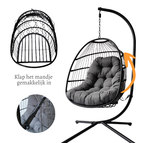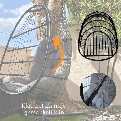 - De hangstoel is inklapbaar en daarom eenvoudig op te bergen in de koude wintermaanden.