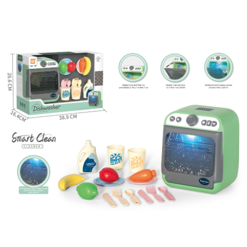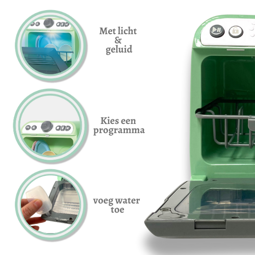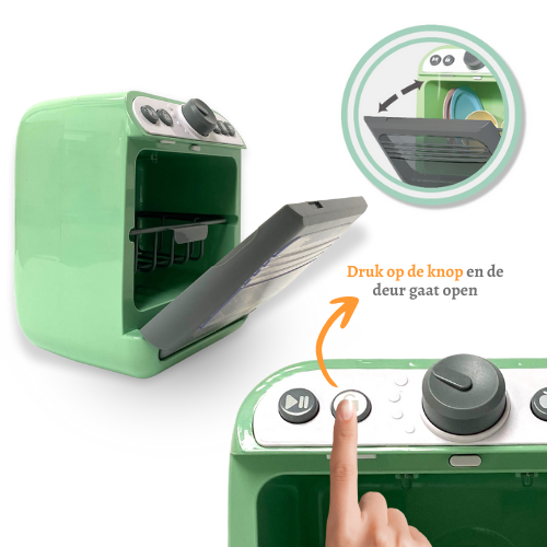 Kinderen houden van imiteren en fantasie! Maak jullie smart cook collection compleet met deze gave Vaatwasser. Open de klep, stop de vaat in de vaatwasser, vul het waterreservoir met enkele druppels (zie foto), sluit de deur om te starten, en druk op het knopje; Dish Done! Net een echte vaatwasser, en een geweldig speelgoed dat de verbeelding prikkelt en leert!