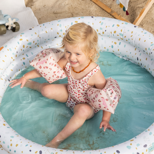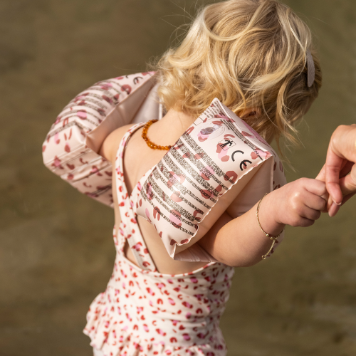 Zwembandjes bieden ondersteuning bij het babyzwemmen maar zijn niet levensreddend! Houd uw kindje dus altijd in het oog.